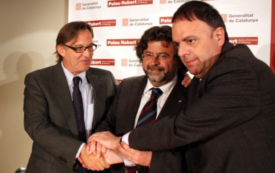 El secretari Antoni Castellà, l'alcalde de Vic, Josep M. Vila d'Abadal, i l'alcalde de Manresa, Valentí Junyent