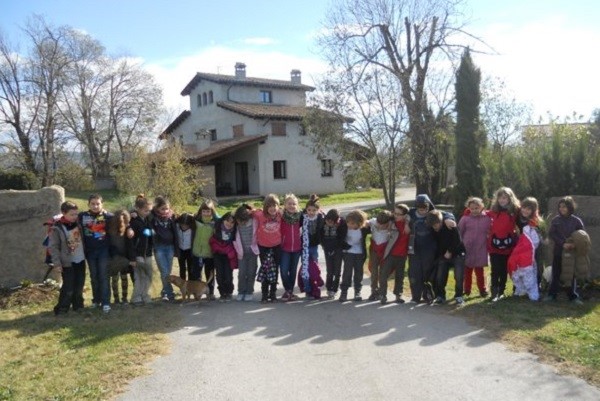 Una imatge de la classe guanyadora en una de les visites a masies de Manlleu