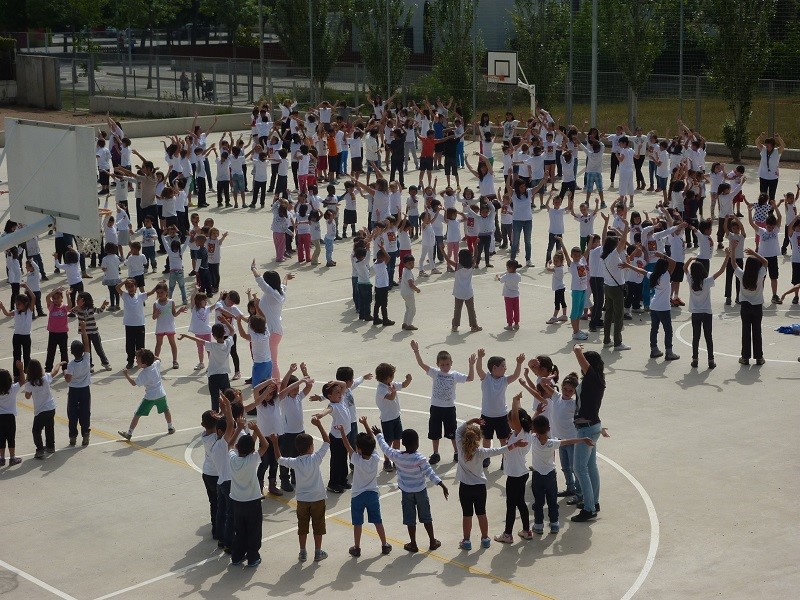 Els nens i nenes de l'escola Quatre Vents al pati
