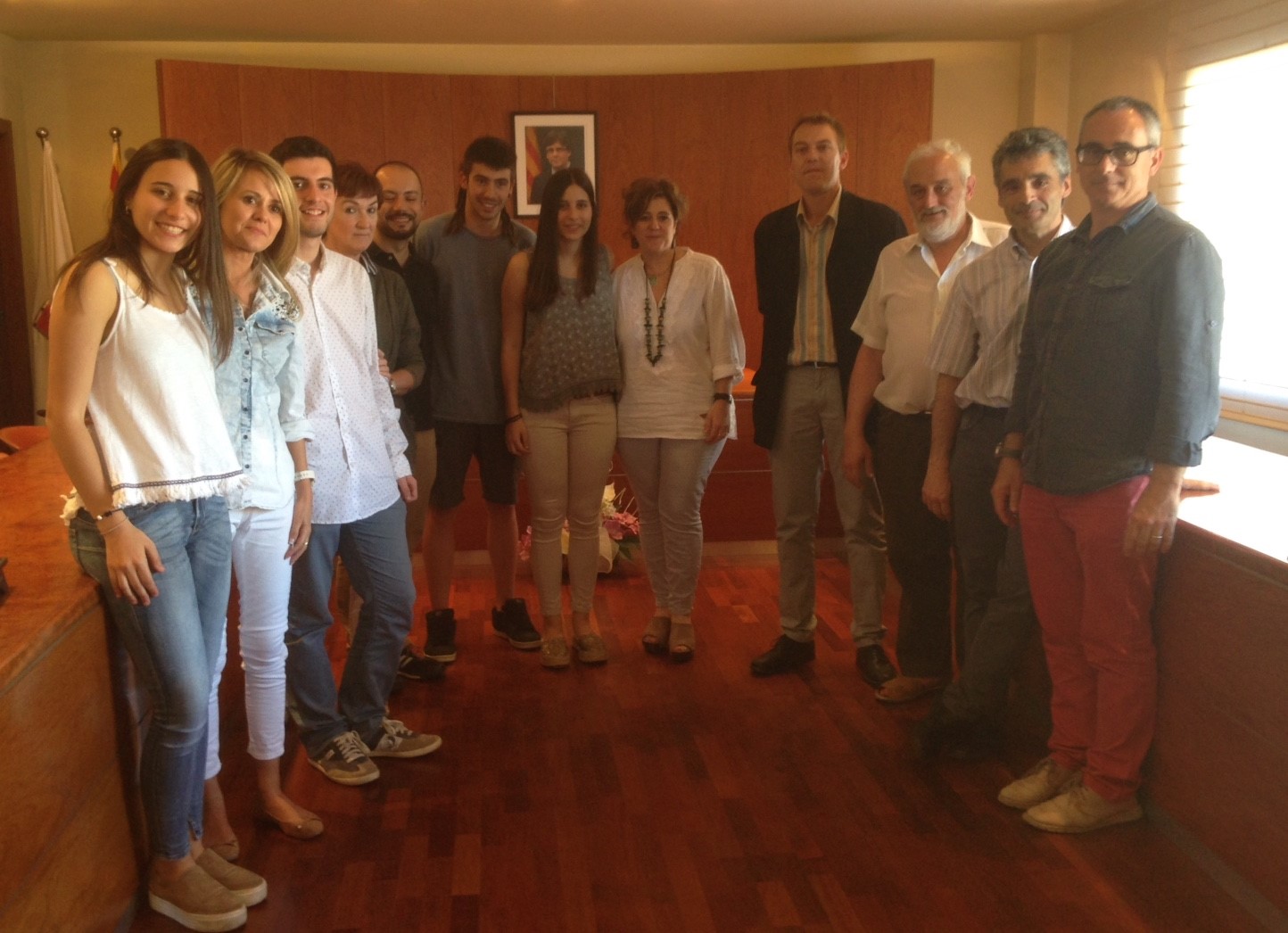 Olga i Bruna Maneja, Roger Palomeque i Miquel Campàs han guanyat els Premis als treballs de recerca de batxillerat 2016 entregats aquest dijous per l’Ajuntament de Manlleu a la Sala de Plens.