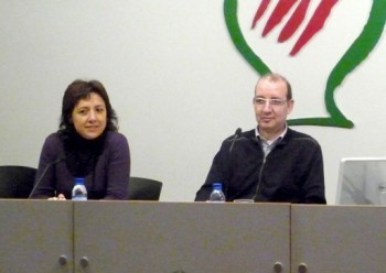 Anna Erra, regidora d'educació, acompanyada per Antoni Bassas.