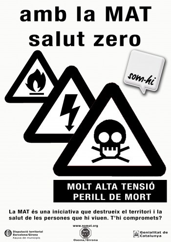 Sota el lema Amb la MAT, salut zero, la secció osonenca de la plataforma No a la MAT conjuntament amb la secció gironina ha iniciat una nova campanya de caire informatiu sobre les conseqüències que pot tenir per la població la construcció de la línia elèctrica de molt alta tensió.