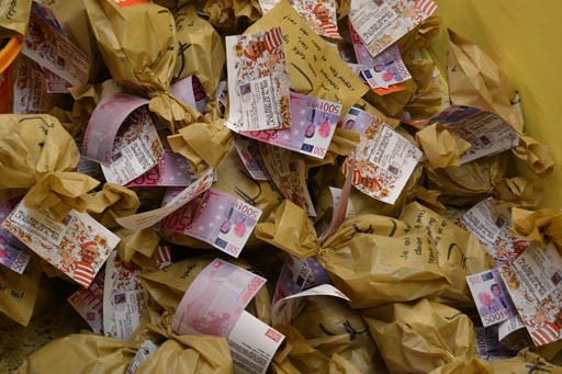 Fent referència al missatge del monarca, adequant-lo a l'actualitat sota el lema "Ja que som tots iguals davant la llei, repartim el sou del rei!" les JERC van obsequiar la gent amb un gran nombre de regals simbolitzant les bosses de diners dels lladres, i completant-les amb la imatge d'enguany de la campanya i amb un bitllet de 500euros editat per a l'ocasió amb la imatge del rei, i d'Iñaki Urdangarín.