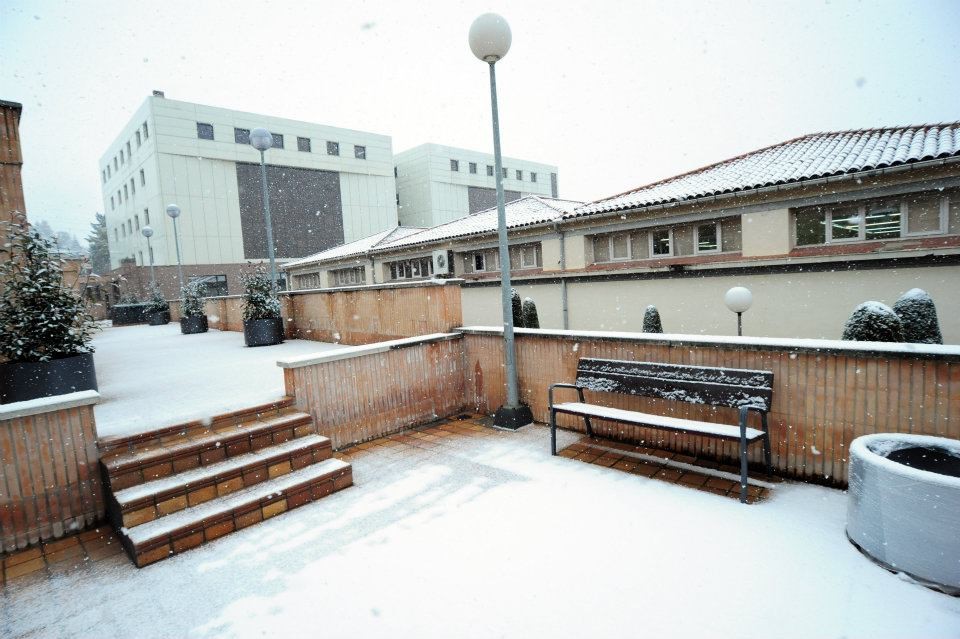 Les instal·lacions de la Universitat de Vic nevades. Foto: UVic