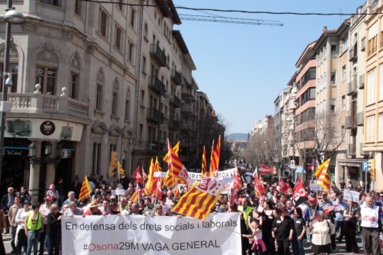 La mobilització contra la reforma laboral ha reunit unes 2.500 persones a la manifestació de la capital d'Osona, segons fonts dels sindicats majoritaris, CCOO i UGT. La Guàrdia Urbana de Vic ha xifrat el seguiment a la convocatòria en 2.000 persones.
