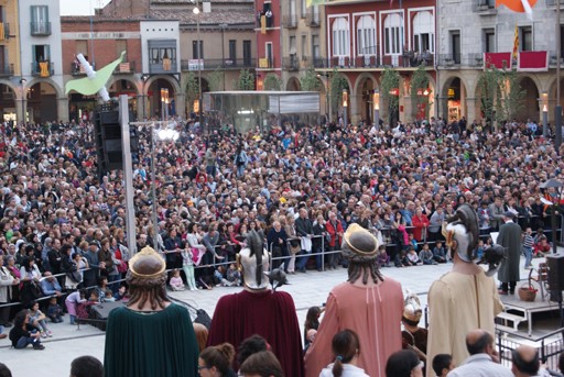 Buia Reixach dirigia la multitud de nens des duna tarima i lactor manlleuenc Xavier Boada vestit de paraigüer al costat dun fanal i un banc, feia de narrador amb textos del regidor i escriptor Àlex Garrido i cantava en algunes cançons. La cantada, impulsada pels Amics de la Música de Manlleu, es va completar amb les actuacions de la Colla Castellera Nyerros de la Plana que van pujar dos pilars, la Colla Gegantera i Grallera de Manlleu i el Grup Sardanista Ocellets del Ter que va ballar dues sardanes enmig del miler de nens.