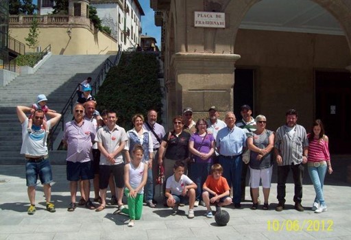 Una imatge de la trobada, sota la placa de la plaça Fra Bernadí