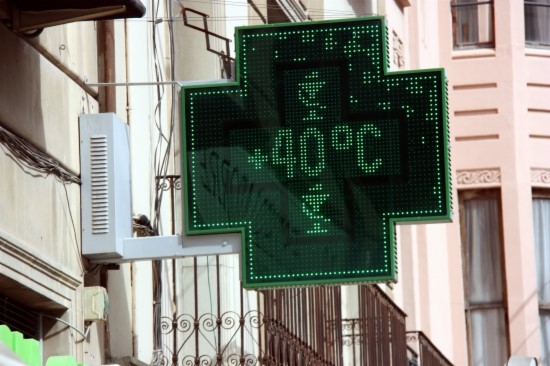 Una imatge d'una farmàcia catalana que mostra les altes temperatures