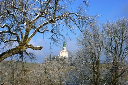 L'ermita de Lourdes de Manlleu, tocada per la neu. Foto: Josep Casellas