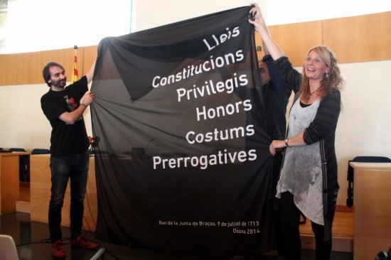 Aquestes paraules es llegiran en lletres blanques sobre la bandera negra. El portaveu de la comissió, Xevi Rovira, ha defensat la campanya "perquè la pèrdua d'aquests drets continua vigent". La Comissió Osona 2014 s'encarregarà dels actes per commemorar el tricentenari del 1714 a la comarca