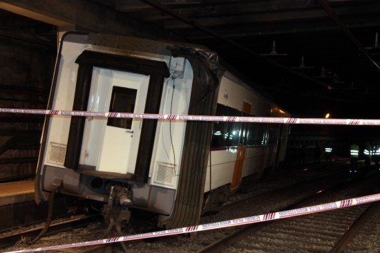 Imatge del tren que ha descarrilat a l'estació de Sant Andreu Arenal de Barcelona
