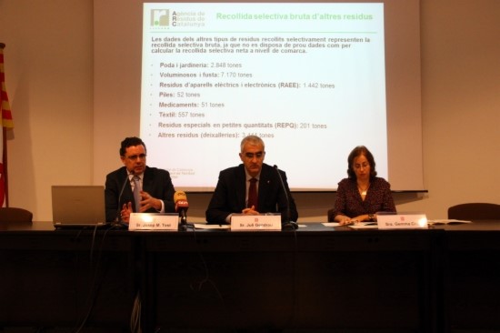 El director general de l'Agència Catalana de Residus, Josep Maria Tost, acompanyat de Juli Gendrau i Gemma Cruz