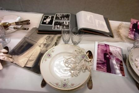 A banda dels vestits, també hi ha una taula amb objectes diversos relacionats amb els casaments