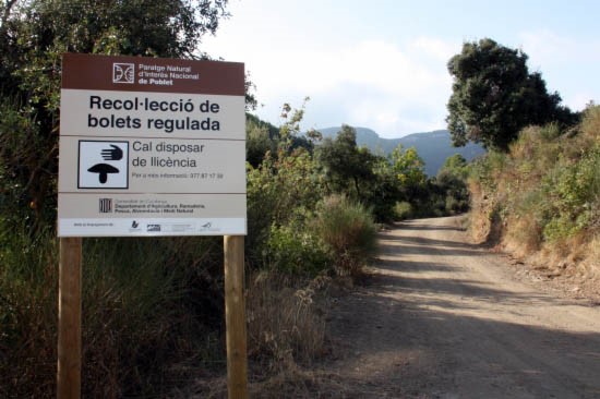 Cartells informant que per anar a buscar bolets a Poblet cal una autorització