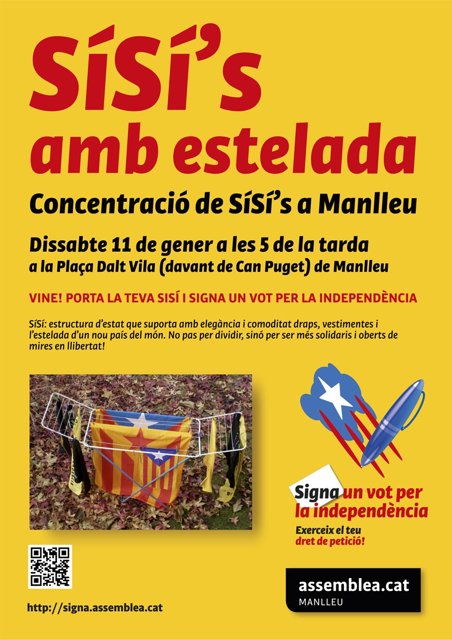 Aquest cap de setmana es durà a terme la jornada nacional de recollida massiva de vots de la campanya de l'ANC 'Signa un vot per la independència'. Des de l'ANC de Manlleu, dissabte promouen una activitat entre lúdica i reivindicativa, amb una concentració de 'sisí' (com es coneixen popularment aquesta mena d'estenedors).