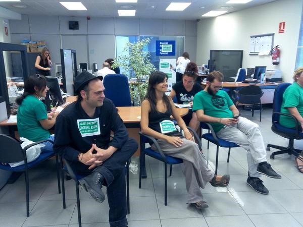 Un dels integrants de la PAH, Toni Rubia, ha explicat a Ràdio Manlleu que també van decidir ocupar "durant 4 hores" una oficina del BBVA de Vic. Des de 2/4 d11 del matí fins a 2/4 de 3 uns quants activistes eren dins de lentitat i altres a lexterior. Van informar els clients sobre "els motius de lacampada, els 5 casos de les famílies que defensem" i també "sinformava els clients de les pràctiques brutes del banc com ara les inversions en armament, el finançament de guerrilles a Colòmbia, levasió de capitals i dimpostos en paradisos fiscals perquè siguin conscients don dipositen els seus estalvis i nòmines".