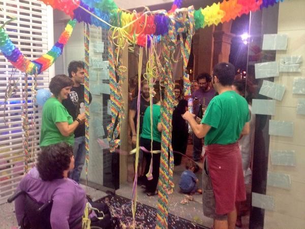 Aquest dilluns s'han complert ja 50 dies de lacampada de la PAH Osona davant de loficina del BBVA a la plaça de Manlleu i per commemorar-ho els activistes van fer una acció simbòlica festiva amb confeti, serpentines i un pastís amb espelmes. Tot plegat per "fer visible que encara hi som".