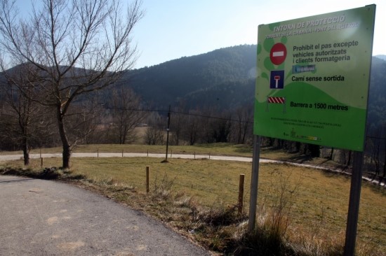 Els Bombers creuen que els joves van entrar a la muntanya per aquesta pista, on hi ha un rètol que indica que és un camí
