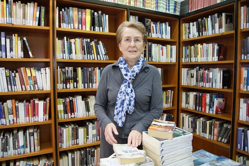 Montserrat Fontserè envoltada de llibres, als quals ha dedicat bona part de la seva vida
