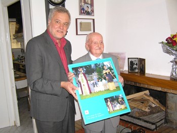 Lalcalde li ha lliurat, en nom de tot el consistori, un obsequi: una fotografia de Josep Arxé amb els gegants de Torelló que, precisament, aquest any també han complert cent anys.