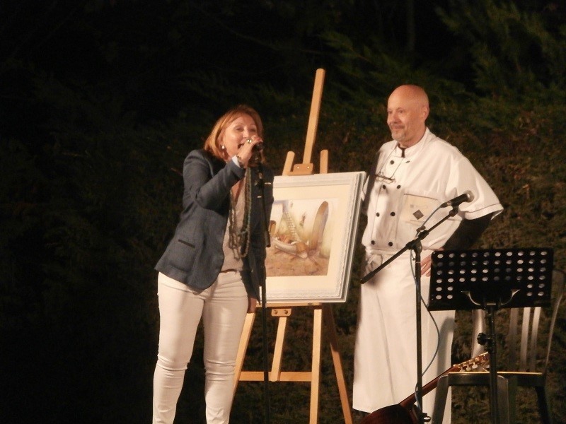 El xef manlleuenc Manel Molera durant la subhasta d'obres d'art del sopar solidari del 2014