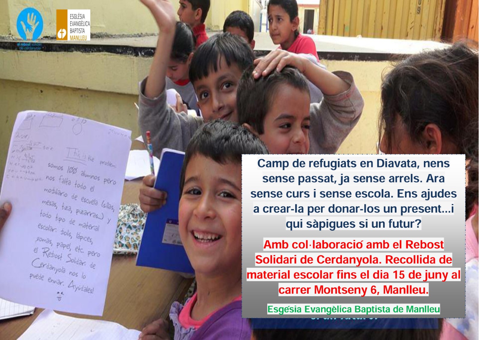 L’Església Evangèlica Baptista de Manlleu ha organitzat una recollida de material escolar oberta fins el 15 de juny pel camp de refugiats de Diavata, a Grècia.
