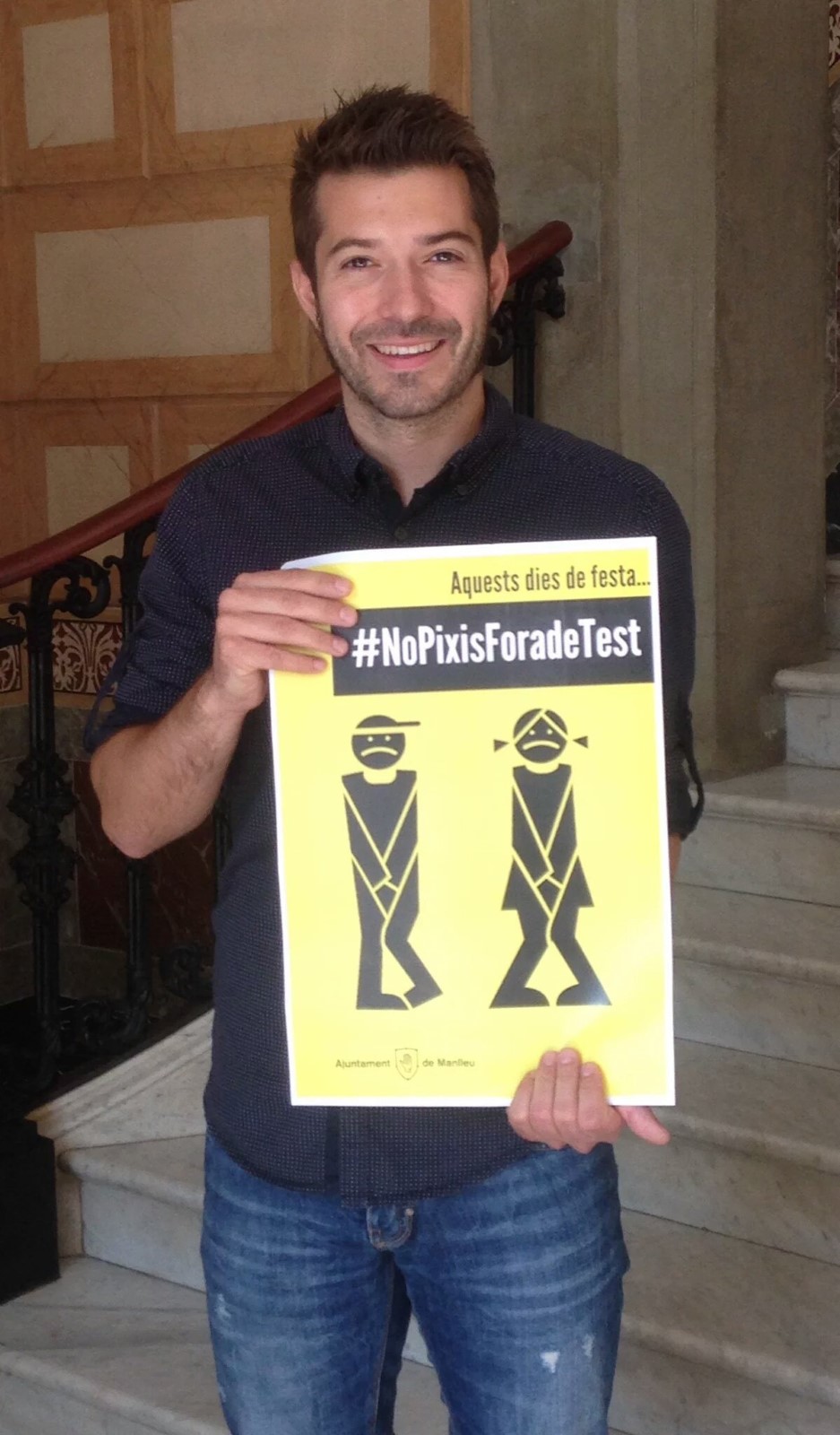 Durant aquests dies de Fes-te Jove i Festa Major, no pixis fora de test! Aquest és l’eslògan de la campanya que ha engegat l’Ajuntament de Manlleu conjuntament amb la Comissió Fes-te Jove per evitar comportaments incívics durant aquests dies festius, en especial en esdeveniments com el Cantabars.