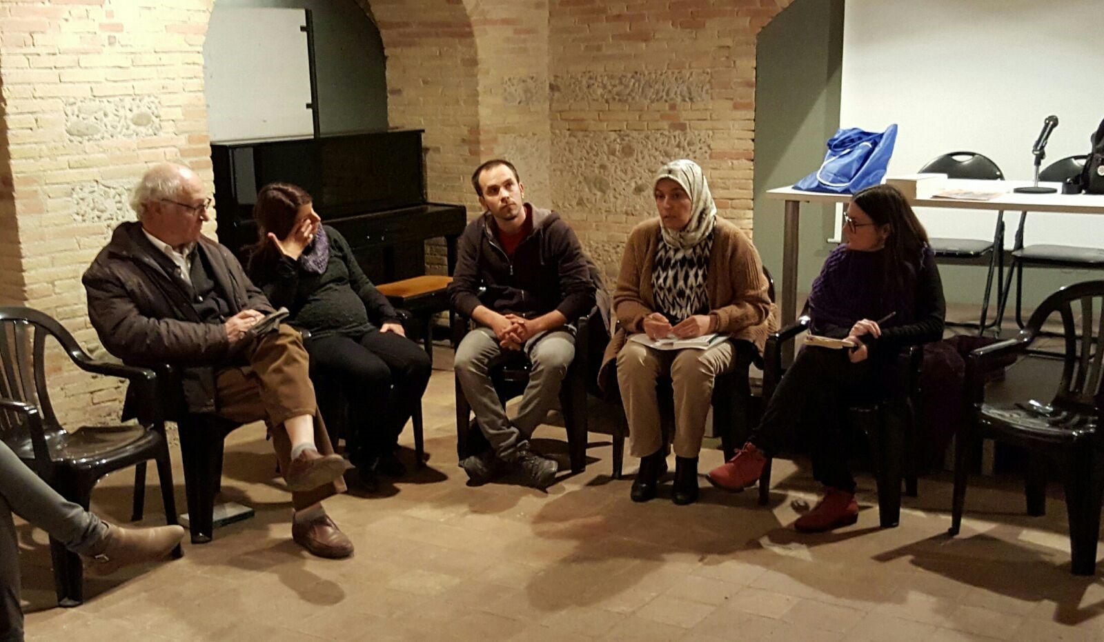 Fatiha ha parlat “des del seu punt de vista, com ella mateixa o coneguts seus han patit islamofòbia”. Seguidament s’ha obert un col·loqui perquè tothom pogués donar la seva opinió sobre el tema. Hi ha participat l’activista d’Unitat Contra el Feixisme i el Racisme de Blanes, Joana Heredia, que ha parlat “sobre la importància que tenen els mitjans de comunicació, les escoles, les institucions i els partits polítics sobre la conscienciació del tema”.