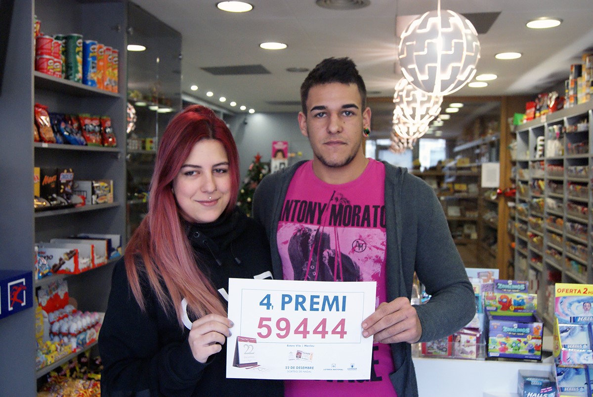Manlleu s'emporta un quart premi de la Loteria de Nadal. L’Estanc Vila, a l’Avinguda de Roma de Manlleu, ha venut una de les sèries d’un quart premi de la Loteria de Nadal. El número premiat ha estat el 59444, un número que ha estat molt repartit segons han comentat els experts.