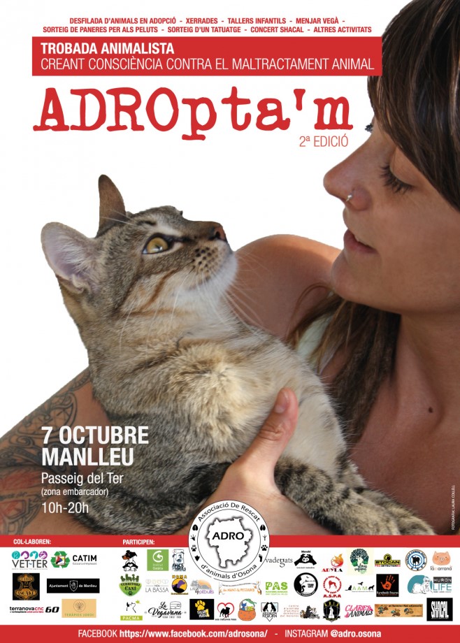 El proper dimarts 3 d’octubre, a les 4 de la tarda es presentarà la 2a edició d’ADROpta’m, Trobada d’adopció i conscienciació per a un millor tracte cap als animals. La presentació es farà a l’embarcador del Ter, el mateix espai que acollirà aquesta trobada el proper dissabte 7 d’octubre.