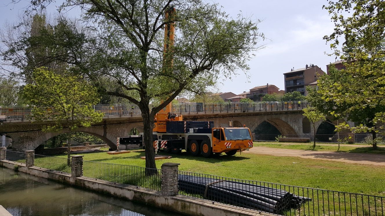 Tal com havia avançat el regidor d’Urbanisme, Enric Vilaregut, la grua de gran tonatge treballa des d’aquest dijous en les obres del pont de Can Molas. És una de les actuacions econòmicament més costoses i la màquina ha de permetre alçar parts del tauler que suporta la carretera d’entrada a Manlleu.