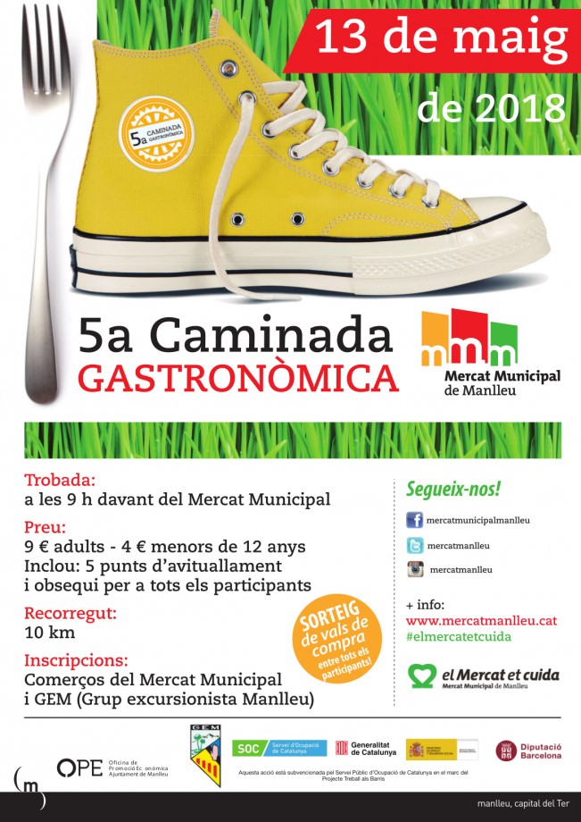 La Caminada Gastronòmica forma part del calendari d’activitats “El mercat et cuida” que organitza l’Associació de Comerciants del Mercat, amb activitats com la sardinada, els tallers de cuina o la nit de tapes. El preu és de 9 euros per als adults i de 4 euros pels nens menors de 12 anys i les inscripcions es poden fer presencialment als comerços del Mercat Municipal, al web del mercat, al GEM o al mateix dia abans de la sortida.