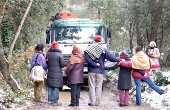 Les sis persones s´ha situat al mig del camí d´accés a la torre per impedir-ne la seva construcció.