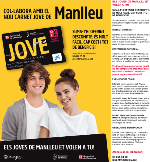 Des de l’Oficina de Promoció Econòmica (OPE) i el servei de Joventut de l’Ajuntament, es fa un treball conjunt per fomentar l’ús del carnet tant pels joves del municipi com per les empreses que puguin oferir descomptes per tal d’atraure públic.