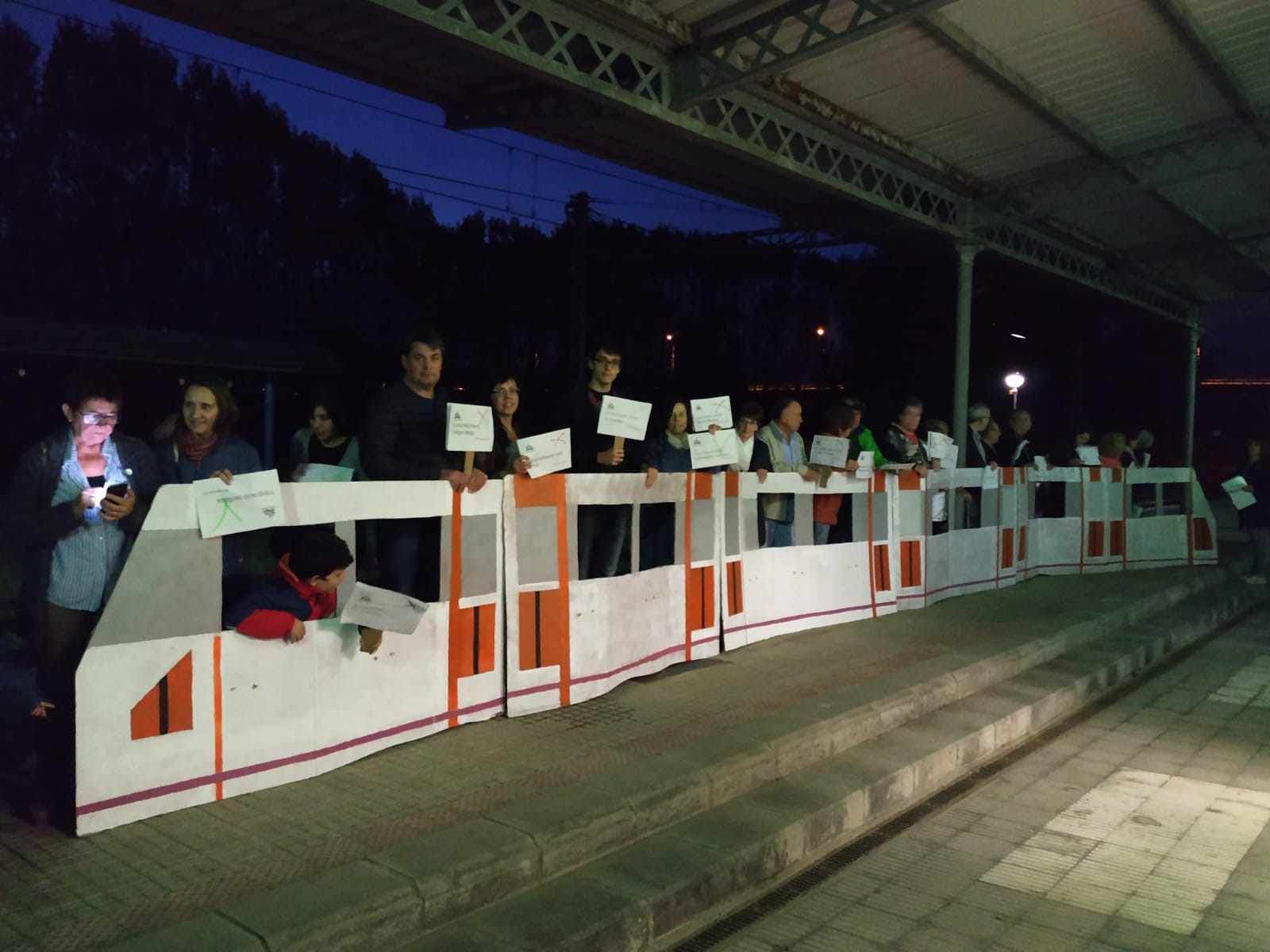 Els concentrats van simular un tren amb cartons i cada persona aguantava un paper on es podia llegir una de les millores que figuren a la llista del col·lectiu perquè la línia 3 de Rodalies tingui una millor qualitat i un millor funcionament.