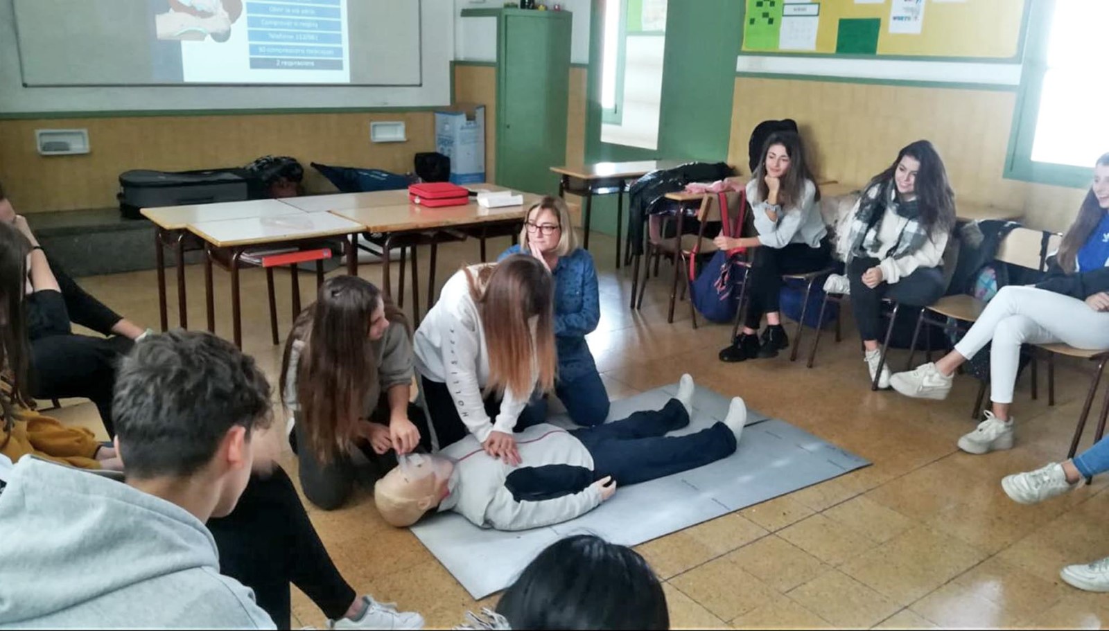 El taller va durar aproximadament una hora de durada i es van explicar les nocions bàsiques de primers auxilis i seguidament es va realitzar una pràctica de maniobres de reanimació per aprendre què cal fer davant una aturada cardiopulmonar.
