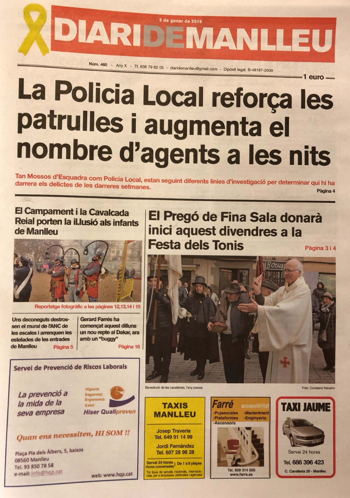 Aquesta és la portada de l'edició d'aquest dimecres, 9 de gener del 2019, del "Diari de Manlleu".