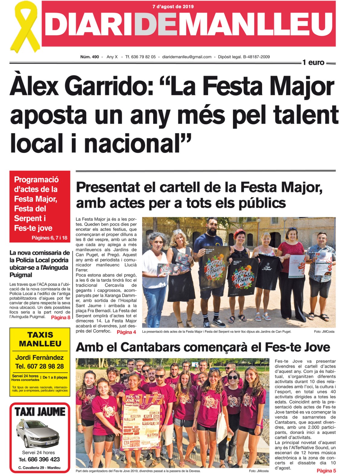 Aquesta és la portada del «Diari de Manlleu» d’aquest dimecres, 7 d'agost de 2019.