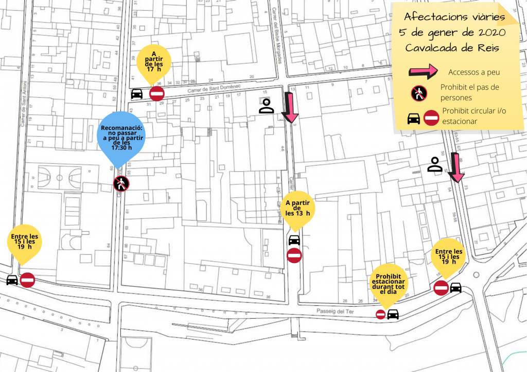 Afectacions pel 5 de gener a causa de la Cavalcada de Reis