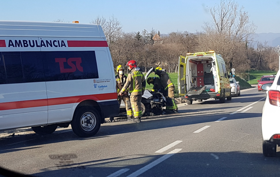 Segons han informat els Bombers, en l'accident només s'ha vist implicat un vehicle, el qual el conductor ha resultat ferit lleu. Pressumptament el cotxe hauria sortit de la carretera i ha impactat amb el lateral de la via. L'incident s'ha produït a prop del Club Esportiu Tir d'Osona. Fins al lloc dels fets s'hi han desplaçats dos camions de bombers, una ambulància del SEM i els Mossos d'Esquadra.