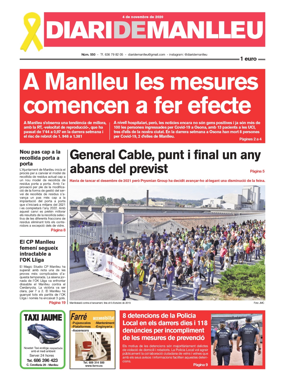 Aquesta és la portada del "Diari de Manlleu" d'avui dimecres, 4 de novembre del 2020.