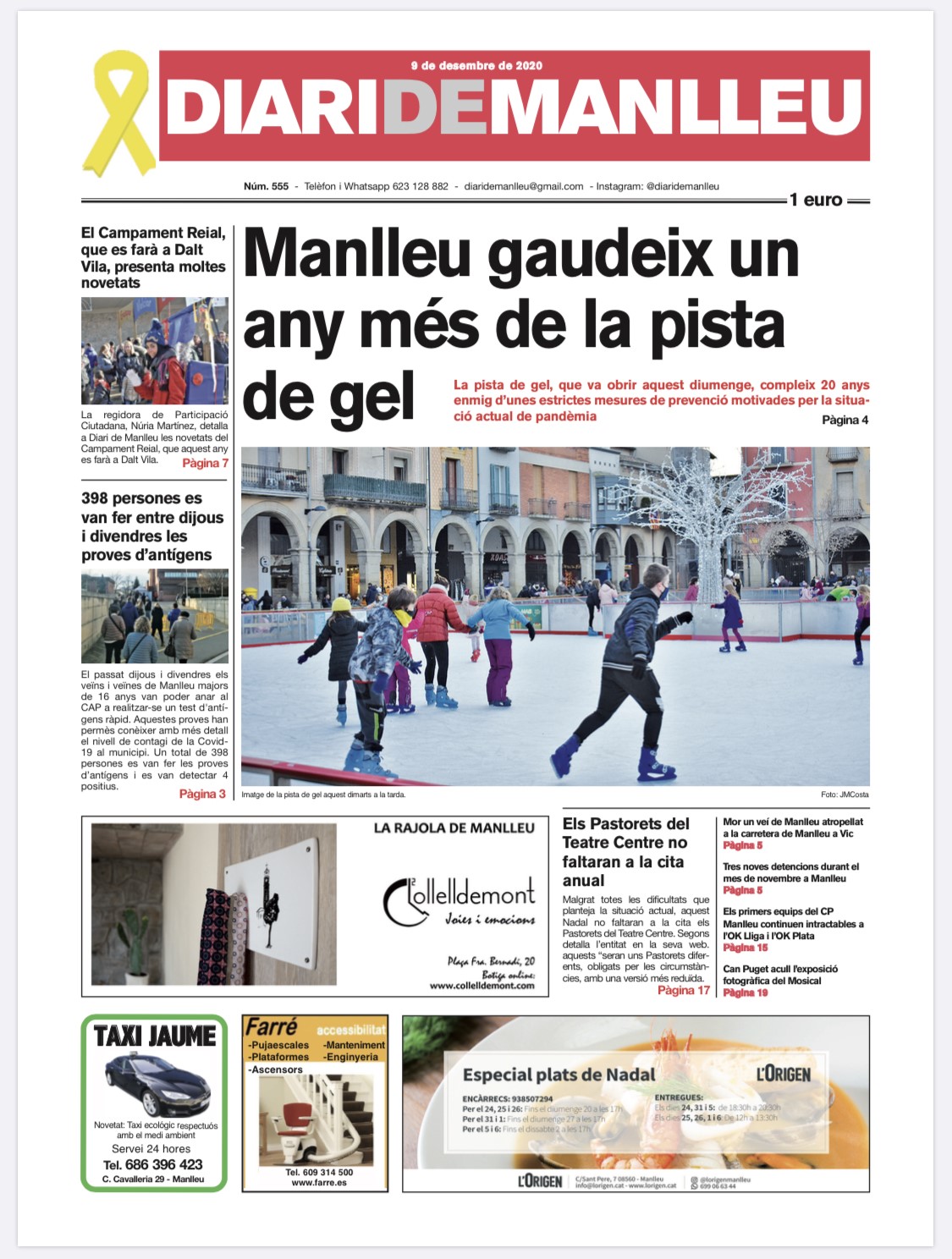 Aquesta és la portada del "Diari de Manlleu" d'avui dimecres, 9 de desembre del 2020.