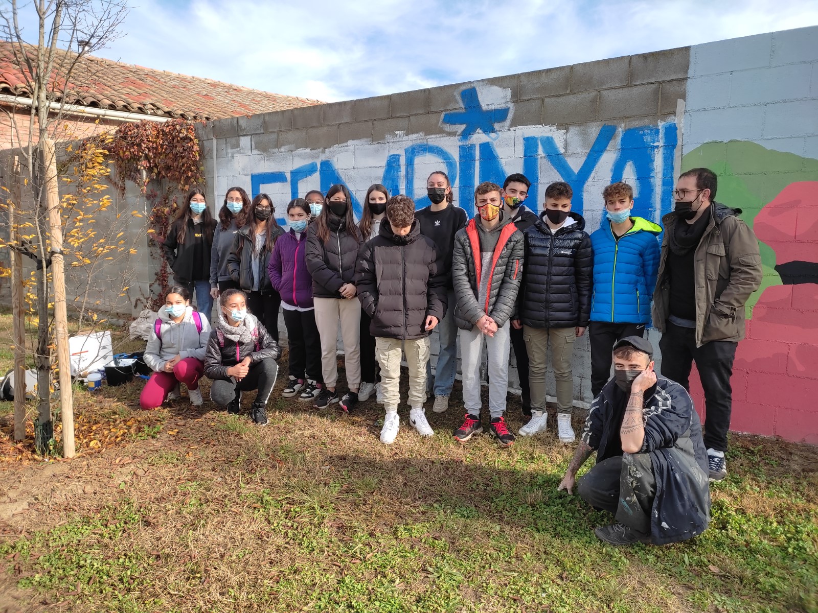 El passat dissabte al matí, un grup de quinze joves participants en l’espai participatiu d’adolescents, que el formen nois i noies de 1r a 4t d’ESO de tots els centres educatius de Manlleu, van pintar un mural al Parc del Rocòdrom amb el lema “Fem pinya!”, l’eslògan que els representa.