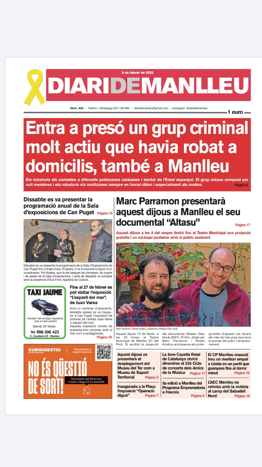 Aquesta és la portada del "Diari de Manlleu" d'avui dimecres, 9 de febrer del 2022.
