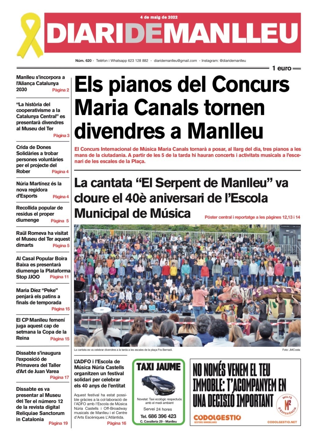 Aquesta és la portada del "Diari de Manlleu" d'avui dimecres, 4 de maig del 2022.
