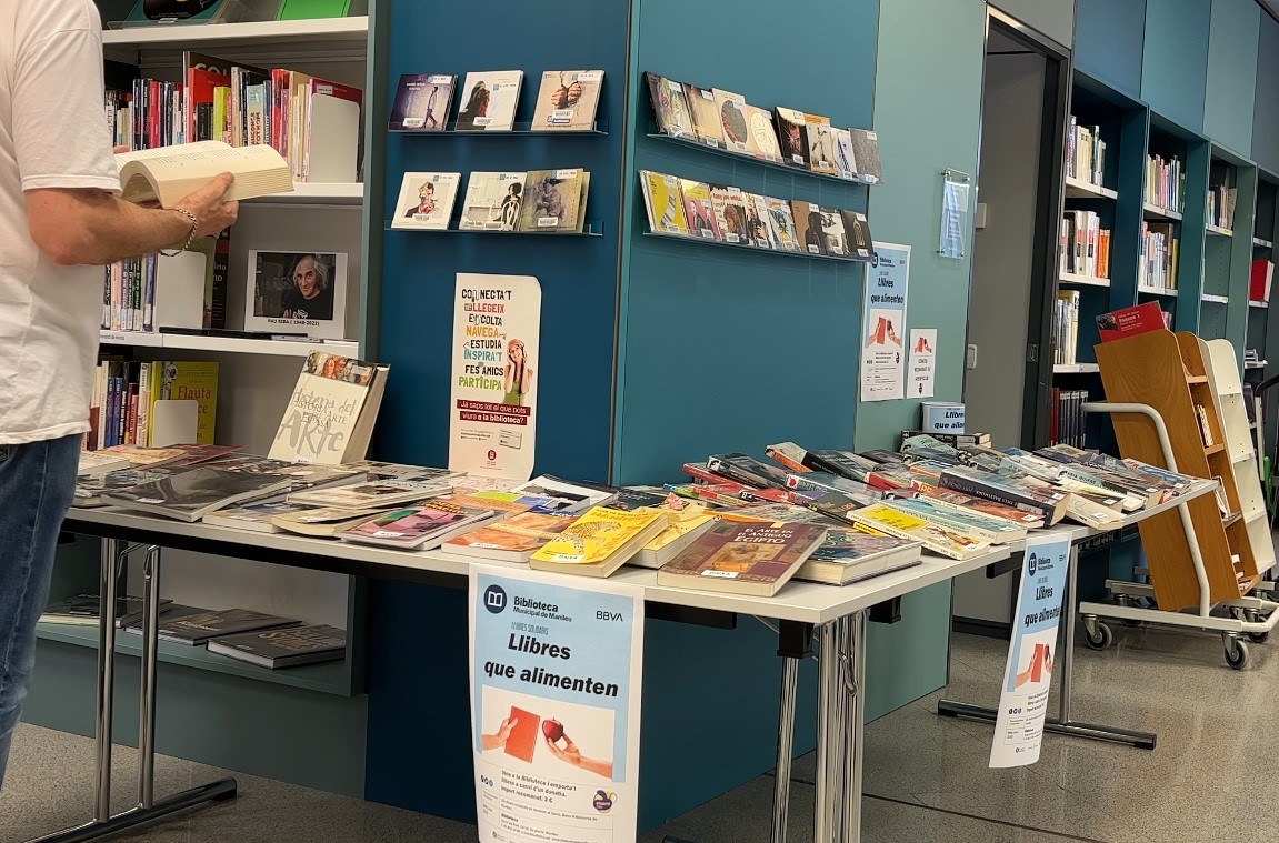 La Biblioteca Municipal de Manlleu BBVA ja ha recaptat 333€ amb la campanya Llibres que alimenten que es va iniciar al juliol. Els diners recollits fins ara s’han entregat al Banc d’Aliments El Sarró, el qual els destinarà principalment a comprar farinetes, llet infantil i aliments per a nadons. Tot i que ja s’han entregat, fins l’11 de novembre se seguiran recaptant fons per a aquesta mateixa causa. A partir de llavors, es canviarà el destí dels donatius cap a la Marató de TV3.