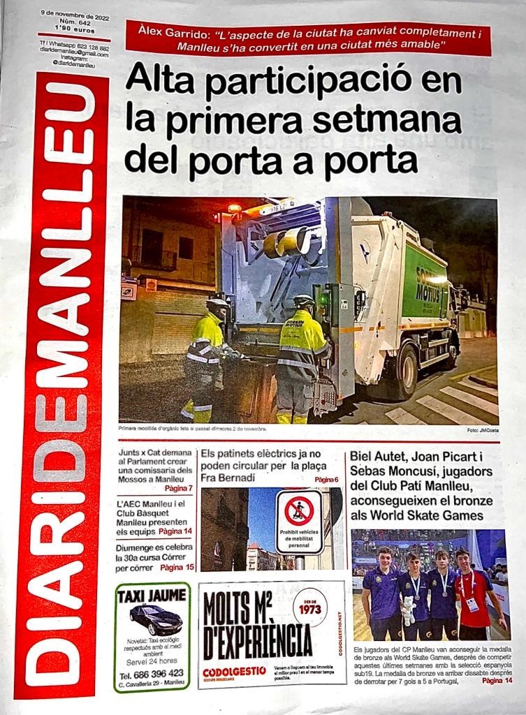 Aquesta és la portada del “Diari de Manlleu” d’avui dimecres, 9 de novembre del 2022.
