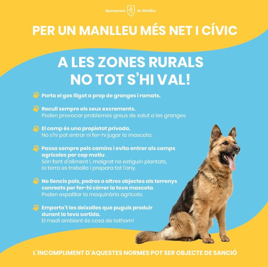 Manlleu ha iniciat una nova campanya de civisme dirigida a la població per fomentar la responsabilitat amb la tinença d’animals de companyia, especialment gossos, a l’espai públic, privat i rural.