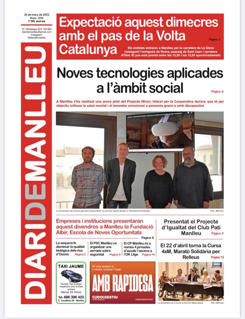 Aquesta és la portada del “Diari de Manlleu” d’avui dimecres, 22 de març del 2023.