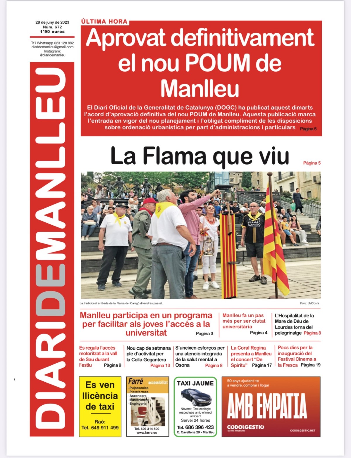 Aquesta és la portada del “Diari de Manlleu” d’avui dimecres, 28 de juny del 2023.